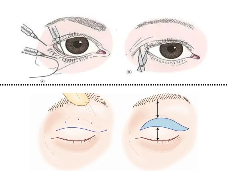 2. بلفاروپلاستی درمانی: در مواردی که افتادگی پلک جلوی دید را میگیرد یا باعث خستگی چشم میشود، انجام میگردد.