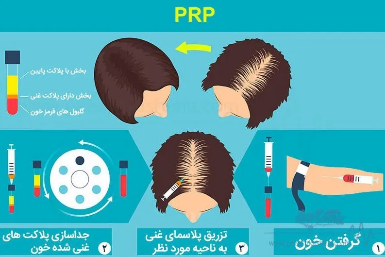 - PRP چیست؟: "PRP یا پلاسمای غنی از پلاکت، روشی است که در آن از خون خود شما برای تحریک رشد موها استفاده میشود. خون شما حاوی پلاکتهایی است که فاکتورهای رشد را آزاد میکنند و این فاکتورها به ترمیم و تقویت فولیکولهای مو کمک میکنند."