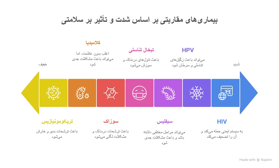 در ادامه، به معرفی شایعترین عفونتهای مقاربتی میپردازیم. این عفونتها بر اساس آمارهای جهانی و ملی، بیشترین شیوع را دارند و شناخت آنها برای پیشگیری ضروری است.